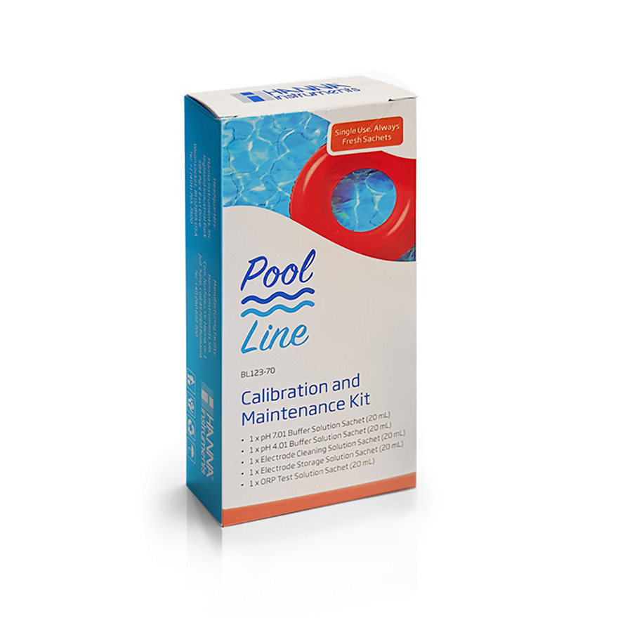 Kit comprenant : solution tampon pH 4,01, solution tampon pH 7,01, solution de test rédox à 470 mV, solution de