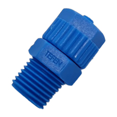 RACCORD MALE PVDF A COIFFE 1/2 »Gm BSPT TUBE Øext 10mm/ Øint 8mm