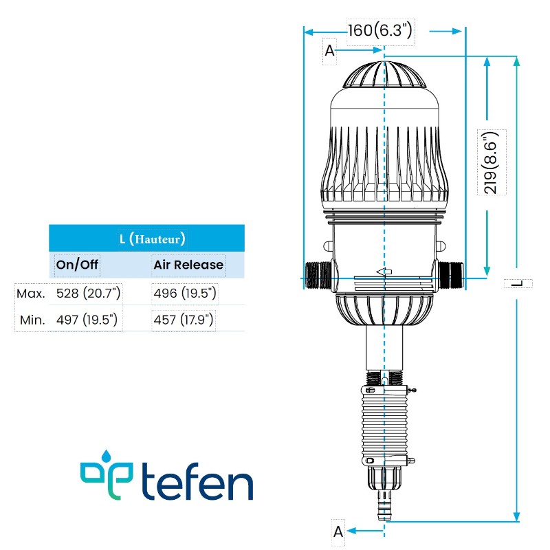MixRite 2.5, 2.5 m3/h, 0.4%-4%, On/Off, Gamme By-Pass interne, PVDF