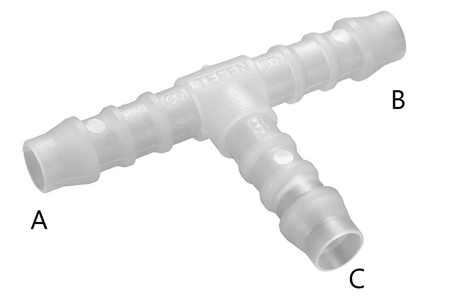 TE INEGAL PVDF CANNELES SORTIES A-B Ø12mm – SORTIE C Ø10mm