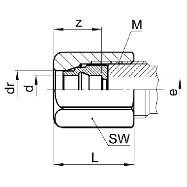 RACCORD CANNELÉ MOULÉ INOX 316 – 1/2 »Gm 14mm – TUBE ØInt. 13mm