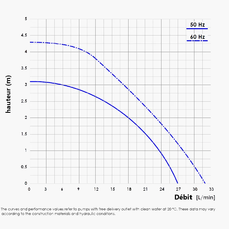 – Hauteur manométrique max. : 3,2 mt
